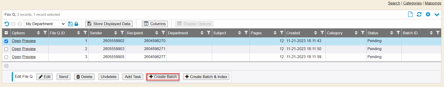 1. Add a Category description to group by a recipient group/department or other identifier (which allows for filtering within the file queue), instead of remembering a specific number to filter by. Select the Recipient from the drop down and click the “Save” button.